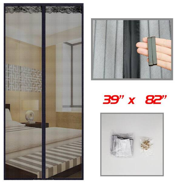 39 in. x 82 in. Black Plastic Magnetic Screen Door with Encrypting Magnet