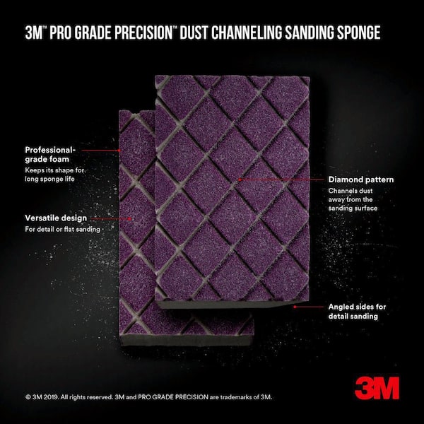 Pro Grade Precision 4-1/2 in. x 2-1/2 in. x 1 in. 80-Grit Medium Dust Channeling Sanding Sponge (2-Pack)