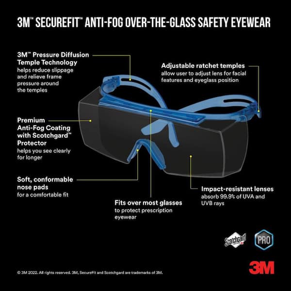 SecureFit Blue Anti-Fog Eyewear with Scotchgard Protector, Clear Lens