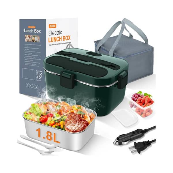 3in1 Stainless Steel Food Storage Container with Lids, Rapid 100W 1. 8L Portable Electric Lunch Box Food Warmer in Green