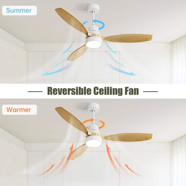 4.3 ft. White Ceiling Fan with Light and 3 Solid Wood Blades Remote Control Reversible DC Motor 52 in. LED Fan Light