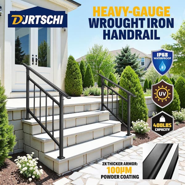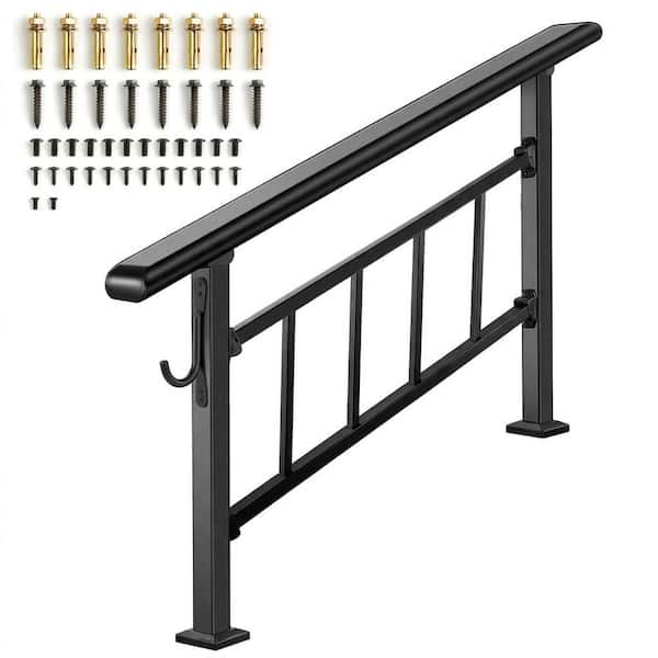 4.41 ft Metal Handrail for Cable Railing System Outdoor Stair Railing for 2-3 Steps Black with Installation Kit