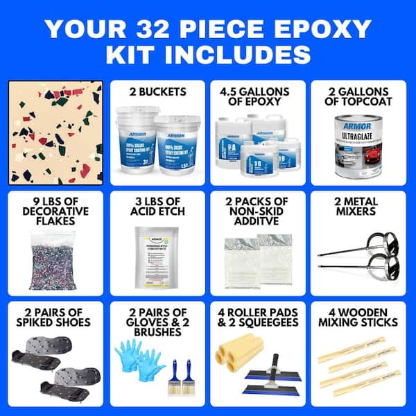 4.5 Gal. Tan Gloss 2 Part 900 sq.ft. Epoxy Kit Interior/Exterior Concrete Basement & Garage Roller Floor Paint Coating