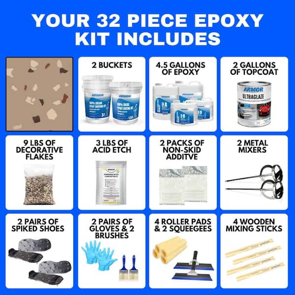 4.5 Gal. Tan Gloss 2 Part 900 sq.ft. Epoxy Kit Interior/Exterior Concrete Basement and Garage Roller Floor Paint Coating
