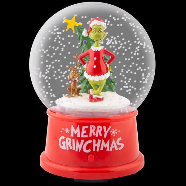 4.5 in. Christmas Snow Globe Grinch with Max and Christmas Tree