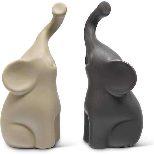 4.7 in 6.3 in. Loving Pair of Elephants in Beige and Grey Modern Ceramic Sculpture Decoration Figure
