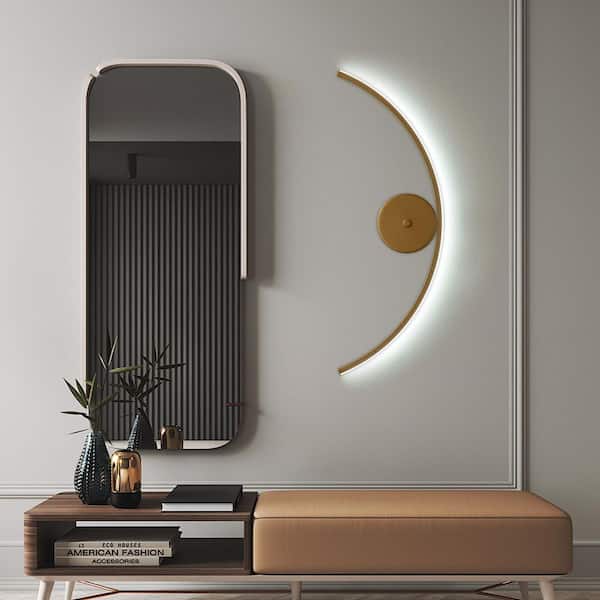 4.72 in. 1-Light Gold Modern Linear 3-Color Temperature Integrated LED Vanity Light Wall Light for Bedroom Living Room