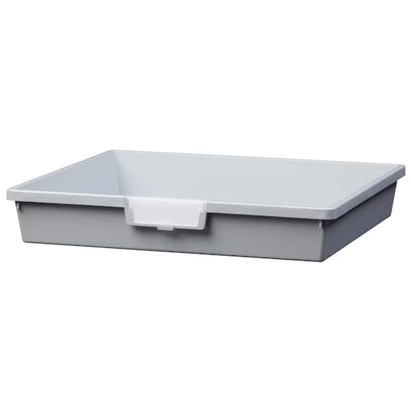 4 Gal. 3 in. Wide Line Single Depth Storage Tote in Light Gray