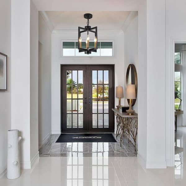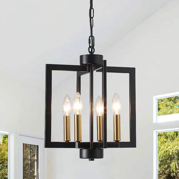 4-Light Black/Gold Candle Style Square Chandelier for Bedroom Study with No Bulbs Included