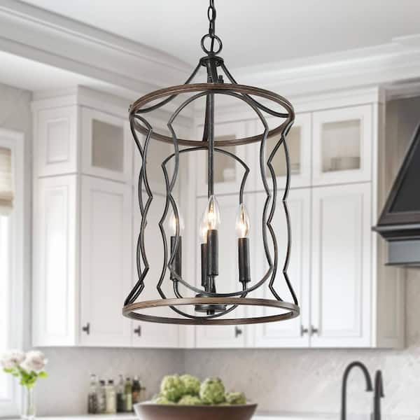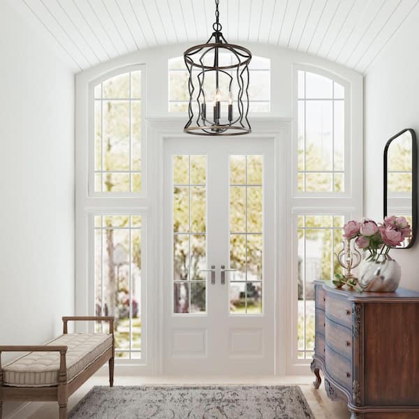4-Light Drum-Shaped Cage Farmhouse Chandelier with Antique Brushed Silver Finish
