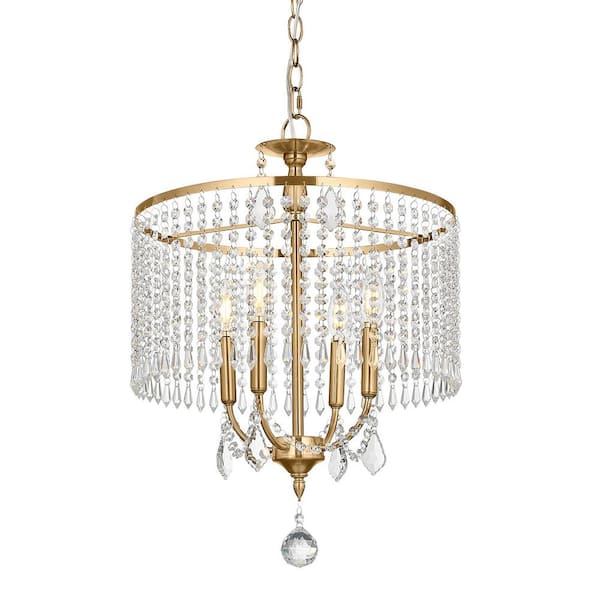 4-Light Gold Dimmable Crystal Chandelier with Clear Crystals Shades