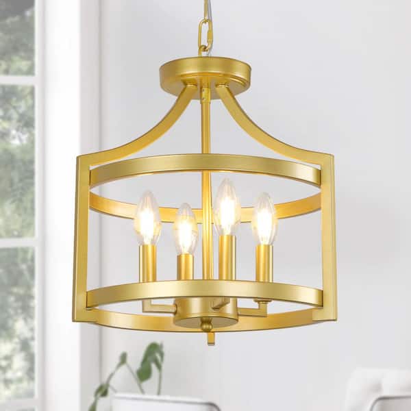 4-Light Gold Round Rustic Lantern Chandeliers for Living Room Entrance Foyer Hallway