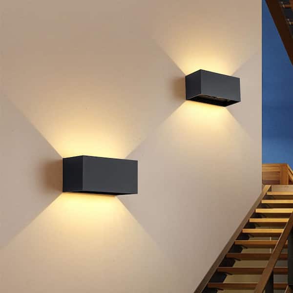 4-Light Matte Black Aluminum Rectangular Hardwired LED Outdoor Wall Sconce with Adjustable Light Beam