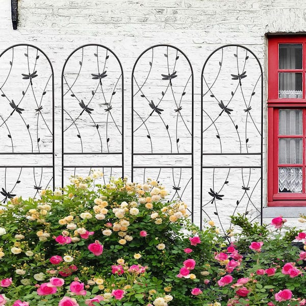 4 Pack 71 in. x 19.7 in. Metal Garden Trellis, Garden Fencing for Climbing Plants, Dragonfly Decorative Flower Trellis
