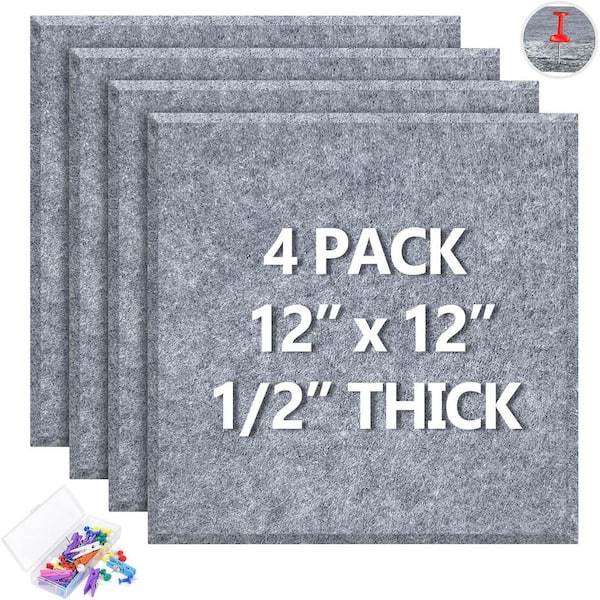 4-Pack Felt Series 12x12 Inch Cork Board Tiles Bulletin Board with 30 Push Pins Self Adhesive Gray 4 Sheets