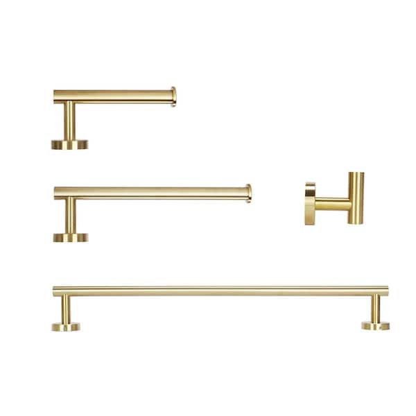 4-Piece Bath Hardware Set with Toilet Paper Holder and 23.6 inTowel Bar in Brushed Gold