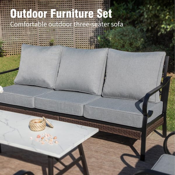 4-Piece Black Metal Outdoor Patio Conversation Seating Set with Rocking Chair, 50000 BTU Fire Pit Table and Gray Cushion