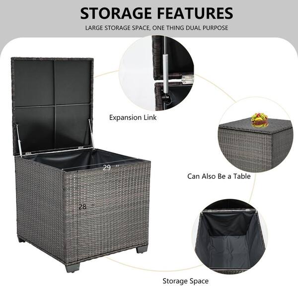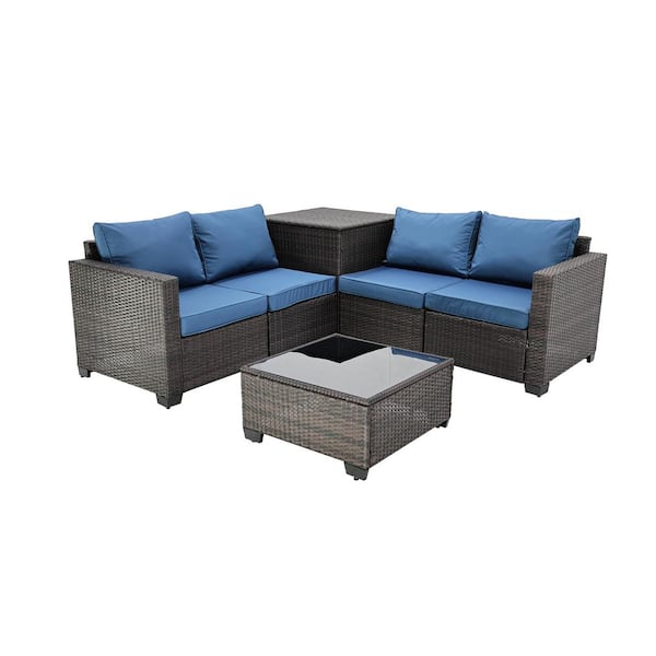 4-Piece Brown Wicker Outdoor Sofa Sectional Set with Peacock Blue Cushions, Large Space Storage Box