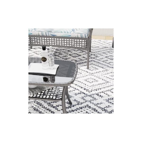 4-Piece Metal Outdoor Bistro Set, Patio Conversation Set with Multi-Color Cushions and Coffee Table for Backyard