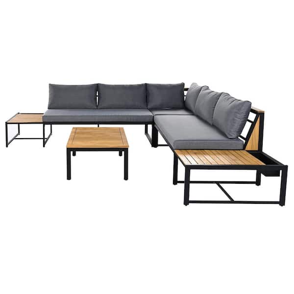 4-Piece Metal Outdoor Patio Loveseat Furniture Set, Sofa Set with Gray Waterproof Cushions, Patio Furniture