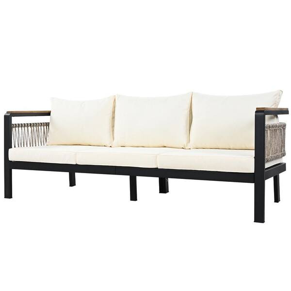 4-Piece Metal Outdoor Sectional Sofa Set 5-person Patio Seating Group with Beige Cushions and a Coffee Table