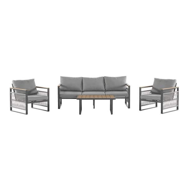 4-Piece Metal Patio Conversation Set with Gray Cushions, Modern Patio Furniture Set for Porch, Garden, Backyard, Balcony