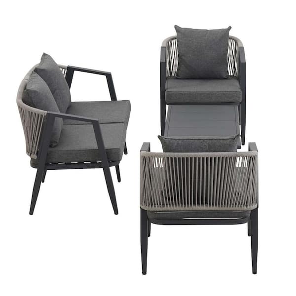 4-Piece Metal Patio Conversation Set with Gray Cushions, Patio Furniture Set, Modern Outdoor Sectional Sofa with a Table