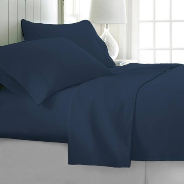 4-Piece Navy Solid 1800 Thread Count Microfiber King Sheet Set