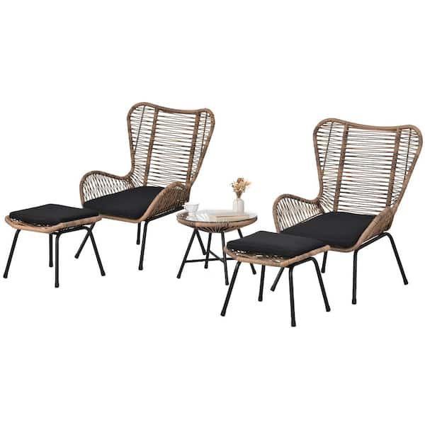 4-Piece Rattan Patio Conversation Sofa Set with Dark Gray Cushions