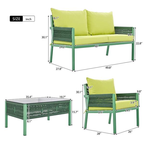4-Piece Rope Patio Furniture Set, Outdoor Furniture with Tempered Glass Table, Patio Conversation Set