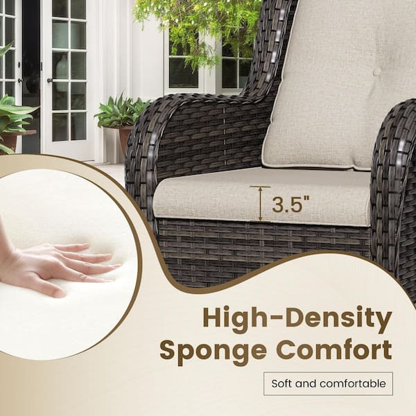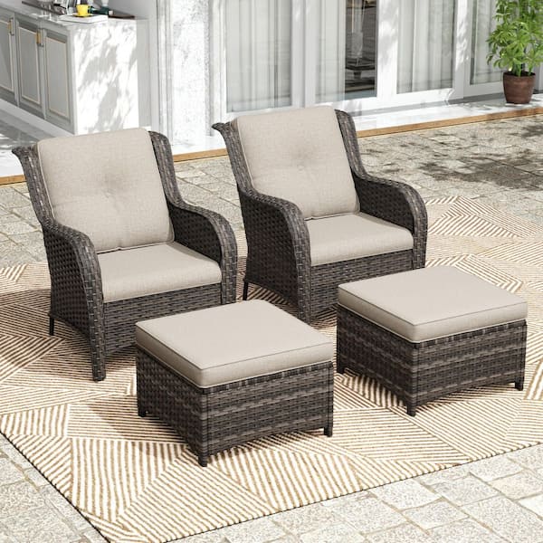4-Piece Wicker Outdoor Patio Conversation Lounge Chair Set with Beige Cushions and Ottomans