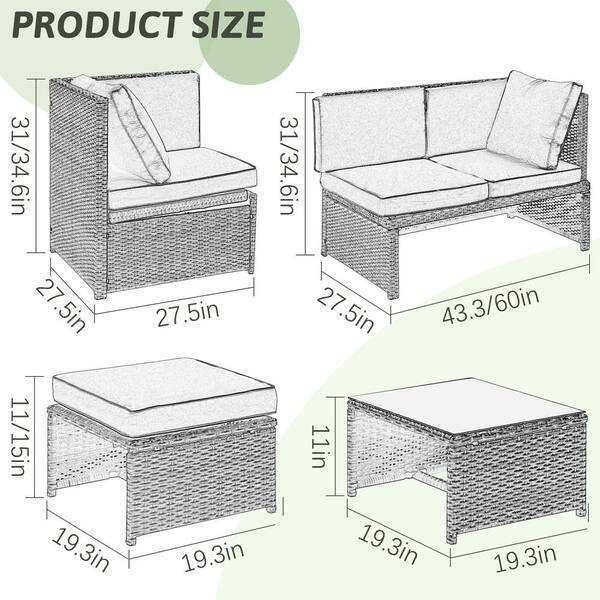 4-Piece Wicker Patio Conversation Set Garden Lounge Set with Glass Top Coffee Table with Blue Cushions