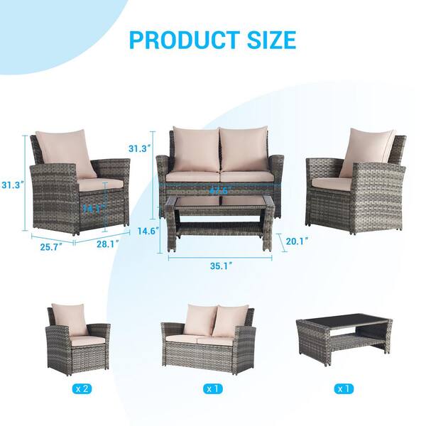 4-Piece Wicker Patio Conversation Set with khaki Cushions