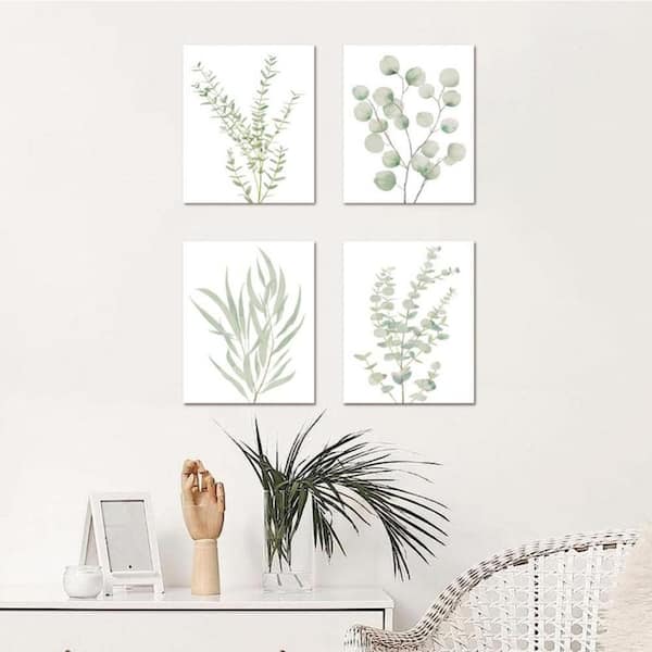 4 Pieces Framed Canvas Wall Art, Green Eucalyptus Leaf Prints, 10 in. x 8 in. x 0.2 in.