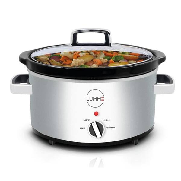 4 Qt. Chrome and Black Slow Cooker with Glass Lid and Temperature Control Knob