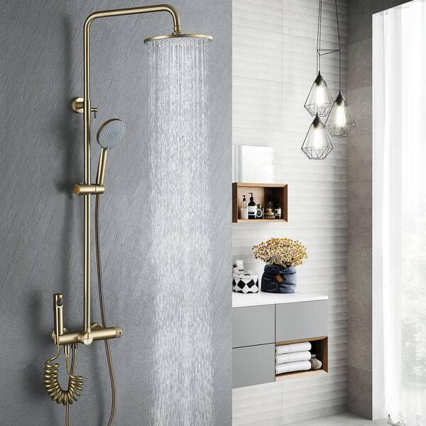 4-Spray Multi-Function Wall Bar Shower Kit with Tub Faucet and Spray Gun in Brushed Gold