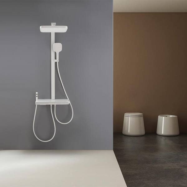 4-Spray Tub and Shower Faucet with Multifunction Hand Shower and Spray Gun in Milky White