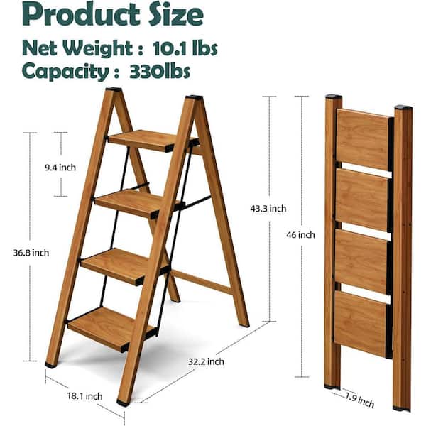 4-Step Aluminum Lightweight Folding Library Ladder with Anti-Slip Wide Pedal, 330 lbs. Capacity