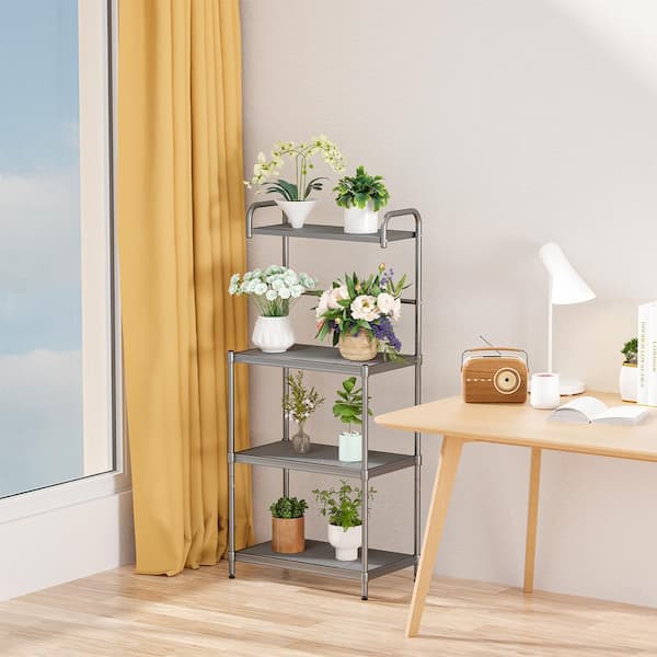 4-Tier Gray Kitchen Microwave Storage Rack with Metal Shelves