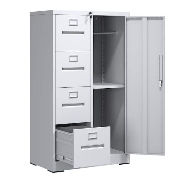 4-Tier Metal Storage Cabinet Locker in White with 4-Drawer and 1 Door
