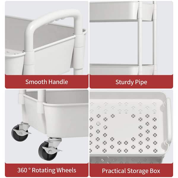 4-Tier Plastic -Wheeled Storage Utility Cart in White