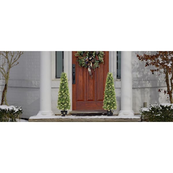 4 ft. Artificial Boxwood Cone Topiary Tree in Pot 2-Pack