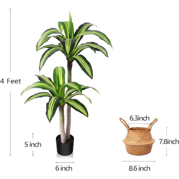 4 ft. Artificial Dracaena Tree Faux Plants Indoor Outdoor Decor Fake Tree with Woven