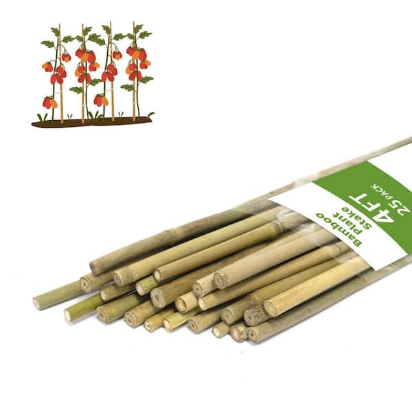 4 ft. Natural Bamboo Garden Stakes, Plant Stakes for Climbing Support for Tomatoes, Trees, Beans, (25-Pack)