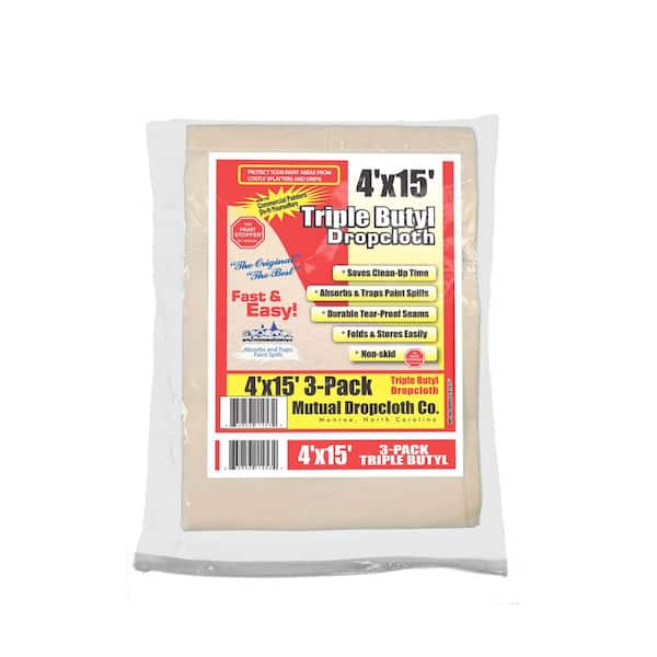 4 ft. x 15 ft. Triple Coated Butyl Drop Cloth White the Original Paint Stopper (3-Pack)