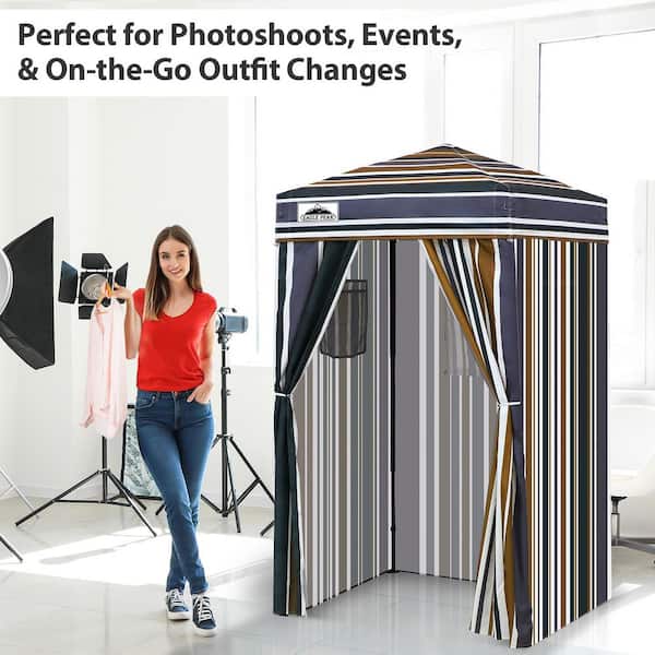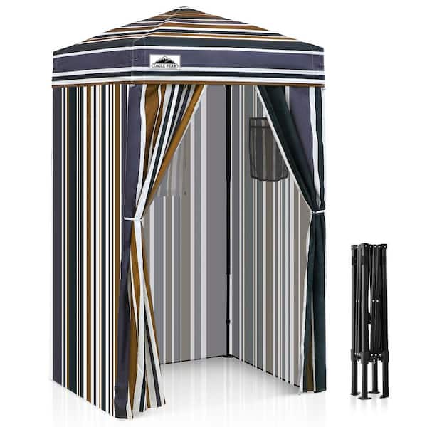 4 ft. x 4 ft. Pop Up Privacy Tent Foldable Outdoor Portable Dressing Changing Room Shelter, Brown Stripe