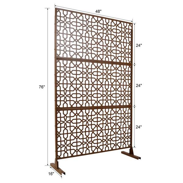 4 ft. x 6.3 ft. Brown Steel Outdoor Privacy Screen, Freestanding Decorative Privacy Fence Panels for Deck Balcony Patio