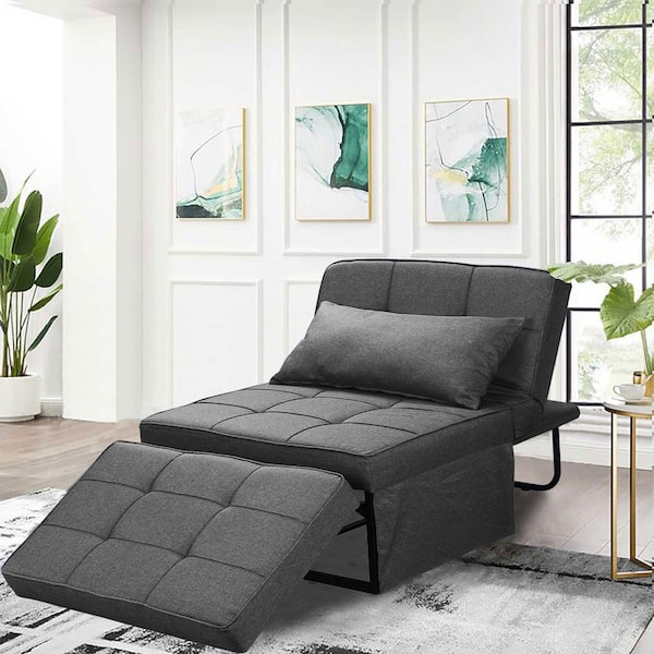 4-in-1 37.4 in. Dark Gray Fabric Twin Size Multi-Function Adjustable 74.02 in. Depth Sofa Bed Couch