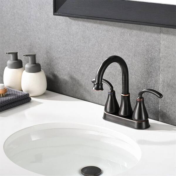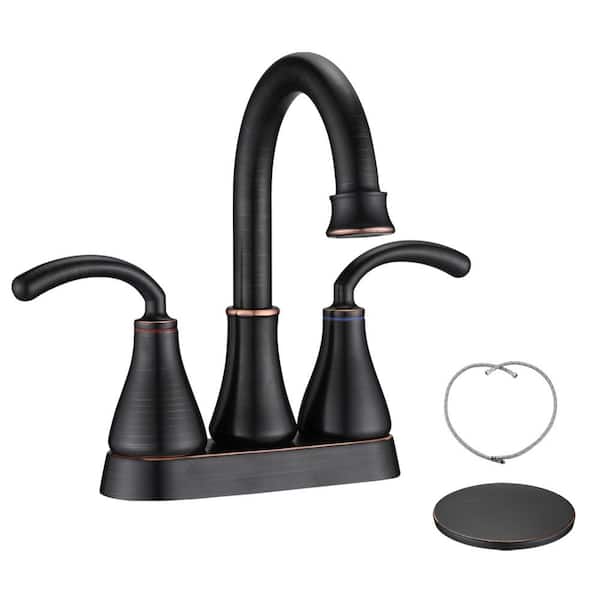 4 in. Centerset Double Handle High Arc Bathroom Faucet with Drain Kit Included Modern Brass Taps in Oil Rubbed Bronze