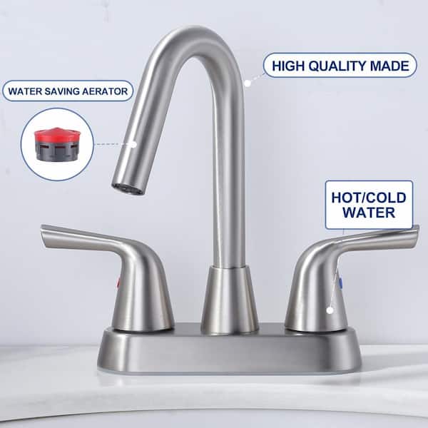 4 in. Centerset Double Handle High Arc Bathroom Faucet with Drain Kit Included in Brushed Nickel